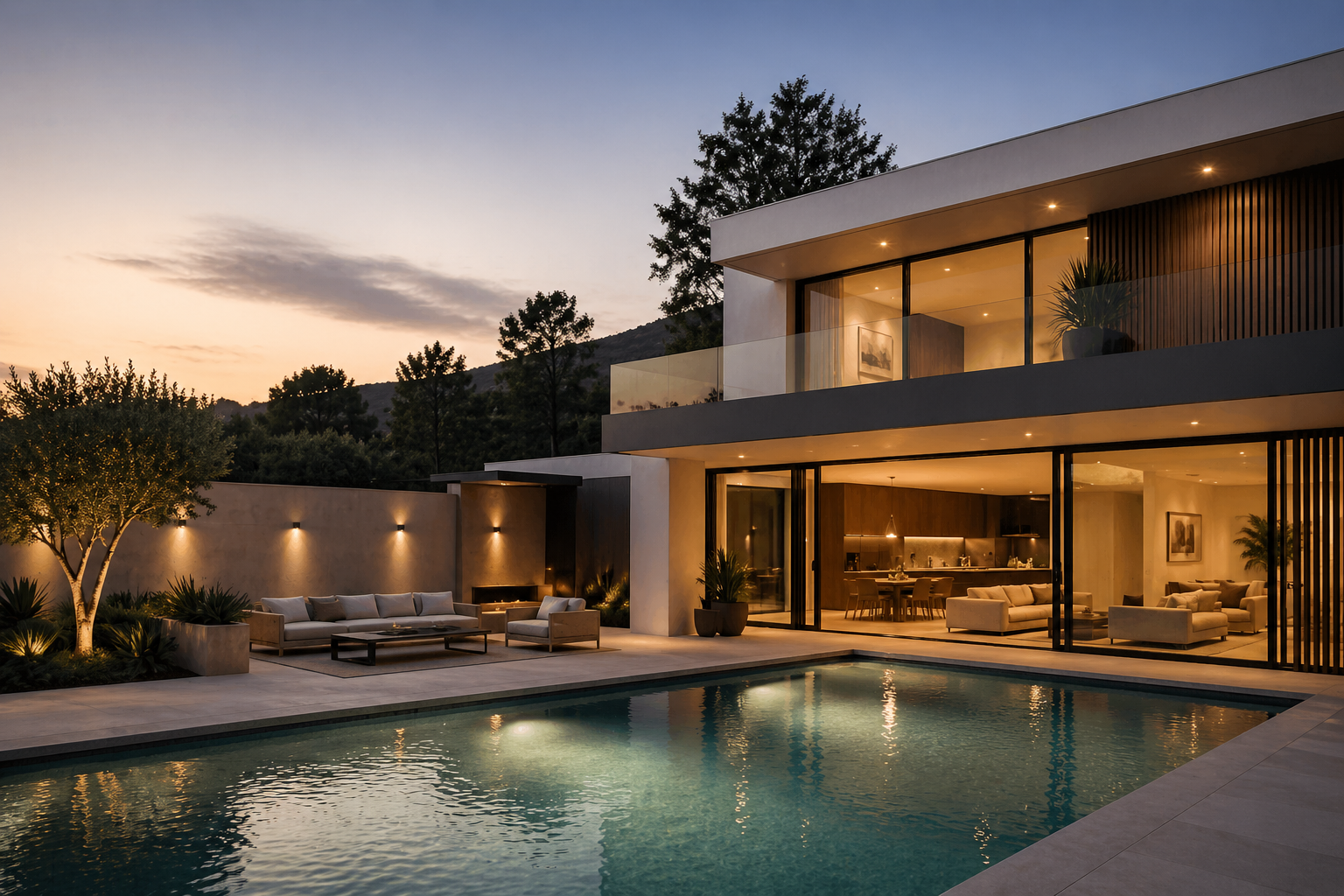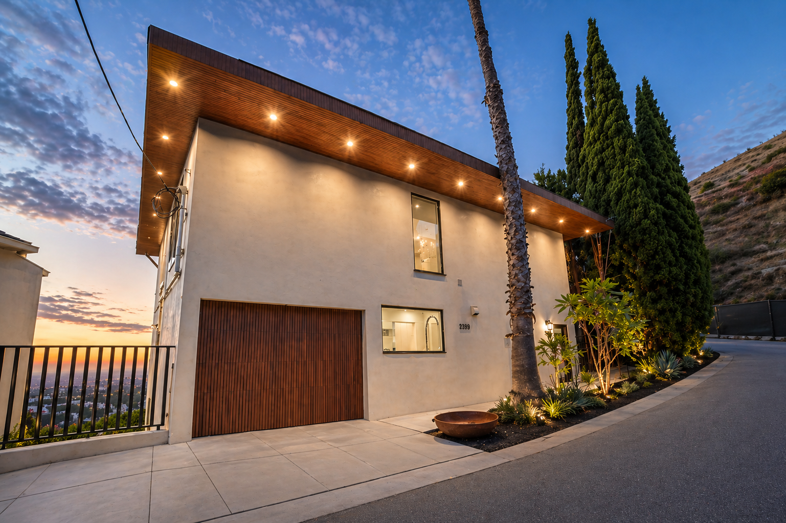 New construction of a private hillside estate featuring expansive views, custom design, and refined finishes throughout.